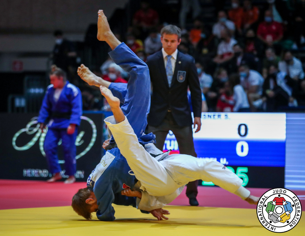 Kisan toinen päivä meni paremmin kuin ensimmäinen päivä, juuri etäisyyden pitämisen takia. Onnistuin pitämään pääsääntöisesti sen riittävänä eli noin 3-4 metrinä ottelijoihin, joten alastulojen arviointi ei jäänyt ainakaan siitä kiinni. Muutamia mainitsemisen arvoisia tapahtumia sattui: N-63 Rou-Fra ottelussa pyydettiin radiolla julistamaan heitosta julistamani ipponin jälkeen osaekomi. Niin tein ja odotin, josko tilanteeseen olisi tullut joku muutos. Niinpä tämä hämäävä tilanne, ippon-julistus ja osaekomi päättyi aikanaan ottelijoiden noustessa ylös. Matsin jälkeen komennon antanut tarkkailija tuli pyytämään anteeksi hätiköintiään, sillä heitto oli täyttänyt ipponin kriteerit, vaikka hän oli aluksi ollut hieman epävarma asiasta. Finaaleissa sain tuomita M-73 Slo-Cze pronssimatsin, jossa julistin hätäisesti slovenialaisen komeasta ura-nagesta waza-arin, vaikka näin selvästi, etteivät molemmat uken kyynärpäät koskettaneet mattoa, vaan uke tuli alas alaselälleen ja toiselle kyynärpäälleen. Olisi pitänyt malttaa mieli ja jättää piste julistamatta, sillä se pyydettiin perumaan. Matsissa oli pari muutakin kinkkistä alastuloa, joiden arvioinnissa onnistuin kuitenkin hienosti, enkä alkanut niistä suorituspistettä arvailemaan. Toinen niistä oli slovenialaisen tekemä vastaheittouhrautumisheitto, jossa hän käytti selkäänsä tatamissa heiton loppuun viedäkseen. Sääntöjen mukaan siitä ei tule antaa pisteitä, mutta mattotekniikkaa siitä saa jatkaa. Matsin päättänyt tsekin heitto taas kääntyi minusta poispäin tarkkailijoiden suuntaan ja tällä kertaa hoksasin vilkaista heidän suuntaansa, kun he nyökytellen viestittivät minulle heitosta waza-arin julistettavaksi. Tämä oli ensimmäinen kerta pitkään aikaan pöytätuomareiden poisottamisen jälkeen, kun hoksasin katsoa tarkkailijoilta apua heiton pisteytykseen. Varoituksia olen heiltä katsonut, mutten vielä heittojen alastuloja, vaikka varmasti olisi pitänyt katsoa paljon useammin. Tämä pöydälle vilkuiluhan on ihan arkipäivää, mikäli mattotuomarin tukena ovat pöytätuomarit. Päivä päätti N-63 Esp-Ned finaalin tuomitseminen, jossa ei siinäkään ollut hankaluuksia.
