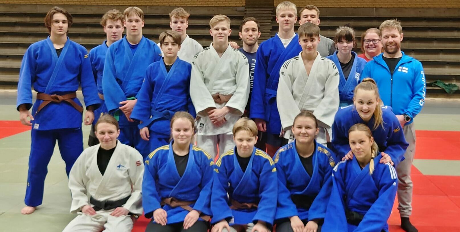 Turnauksen ajan valmennuksen apuna olivat myös Teemu Virtanen (Maskun Tempo) ja Sini Hukka (Kiteen Kippon). Heille matka oli samalla osa Judoliiton 3. tason valmentajakoulutusta: