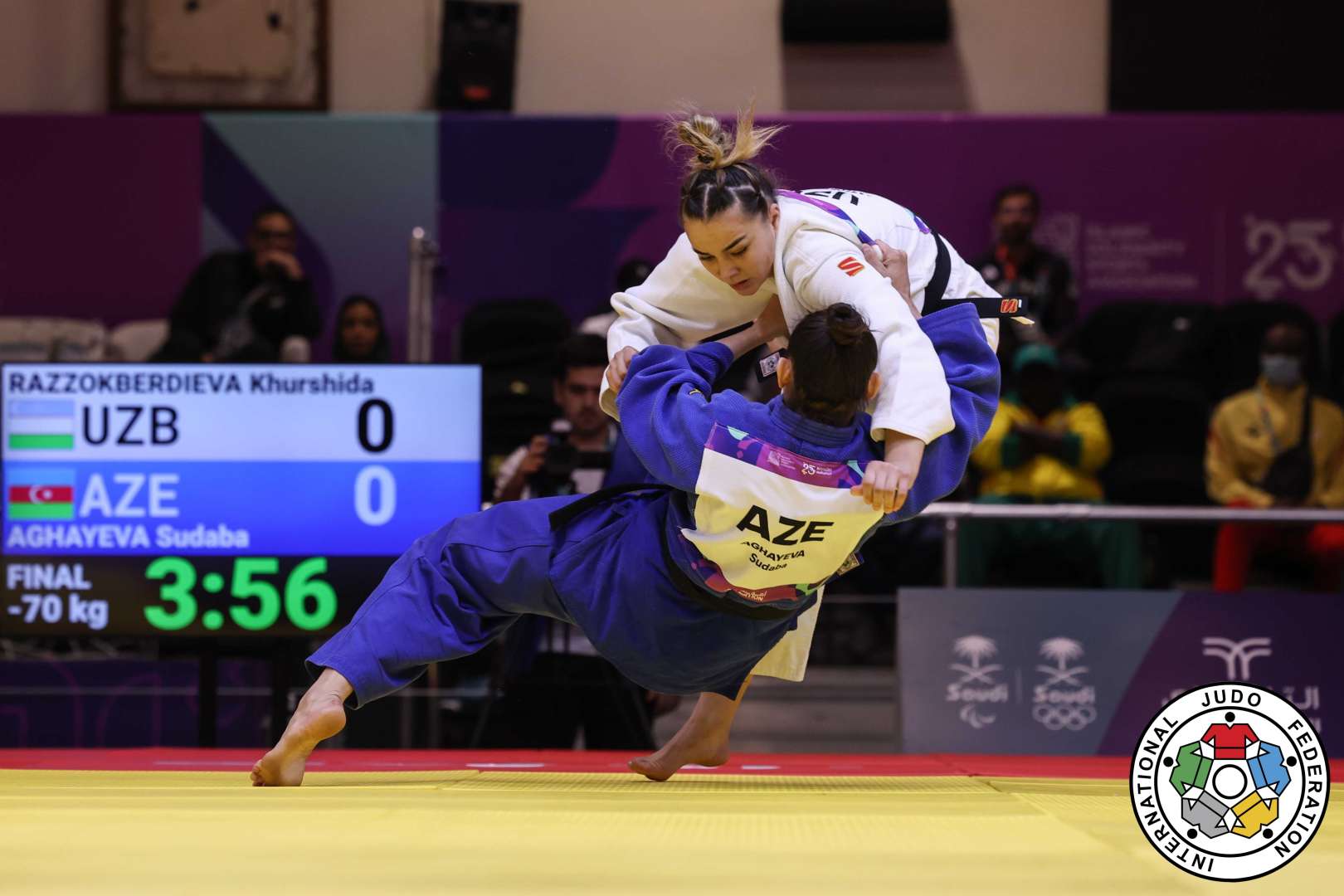 Pääsääntöisesti pään peittäminen (esim. hijab) ei ole sallittua IJF:n kansainvälisissä kilpailuissa. Perusteena on turvallisuus: judossa kaulaan ja päähän kohdistuu voimakkaita otteita ja vetoja, ja lisävaate voi aiheuttaa kuristumis- tai tarttumisriskin.