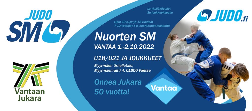 Judon alle 18- ja alle 21-vuotiaiden SM-kilpailut otellaan Vantaalla, Myyrmäen Urheilutalolla 1.-2.10. Koronapandemiasta johtuen kilpailut siirtyivät syksyyn ja nyt noin 110 nuorta kamppailee oman ikä- ja painoluokkansa mestaruuksista Jukaran järjestämässä kilpailutapahtumassa. Samalla kilpailu juhlistaa seuran 50-vuotista taivalta. Kilpailun liput Kilpailuun on myynnissä edullisesti yleisölippuja, sillä päivämaksu on 10 e yli 12-vuotialta, 5 e alakouluikäisiltä eli […]